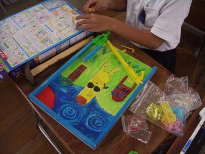 4年生の図工では、“コリントゲーム”の制作をしています。
