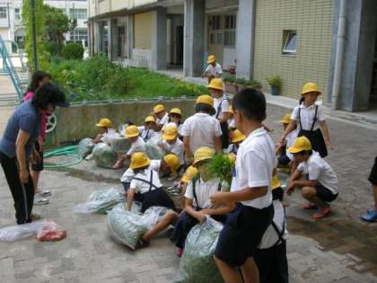 7月18日(木) 1学期末の大掃除を全校児童で行いました。3年生は学習園周辺の草引きやトマトの収穫を担当しました。一生懸命取り組んだ成果が袋いっぱいの雑草たちです。みんなで取り組んで校舎がきれいになりました。