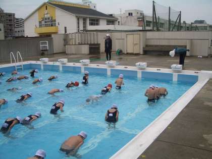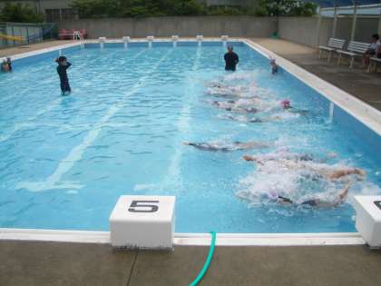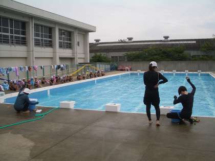 今日の1年生のプールは、“蹴伸び(けのび)”の練習をしました。