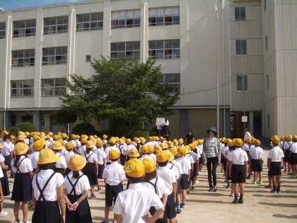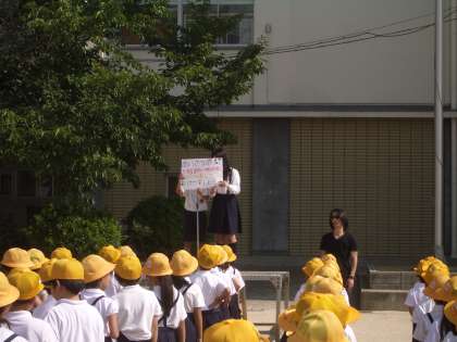 今週は、計画委員が毎朝校門に立って、登校してくる児童たちに呼びかけをしてくれます。