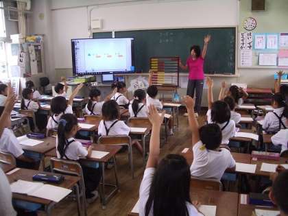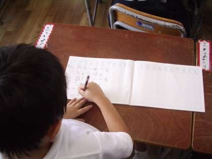 ひき算の式をノートに書く練習をしています。