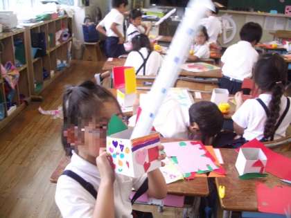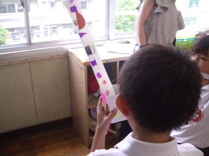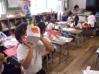 袋の工作が完成すると、子どもたちは得意げにふくらませて見せに来てくれました。