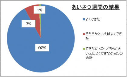99パーセントの児童が、“よくできた”“どちらかといえばよくできた”と回答していました。2学期以降もしっかりあいさつのできる長原っ子になってほしいと思っています。