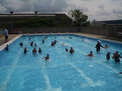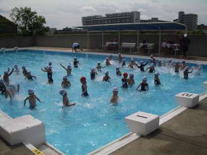 夏休みプール開放では最後に“自由時間”があるため、注意すべき点を聞いた後、“自由時間”の練習をしました。