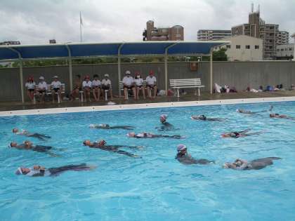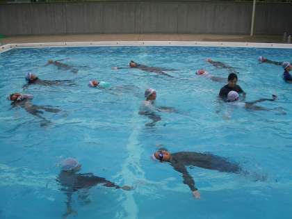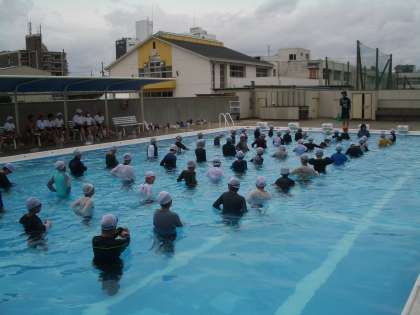 もし服を着たまま川や池に落ちてしまったら……ということを想定して着衣泳をしました。
