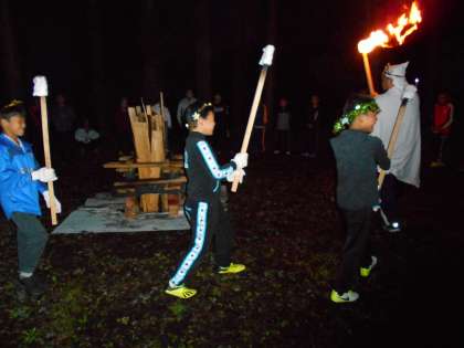 キャンプファイヤーの始まりの様子です。