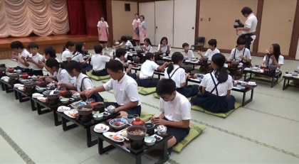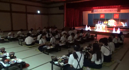 大広間での夕食の途中、舞台では歓迎の出し物がありました。