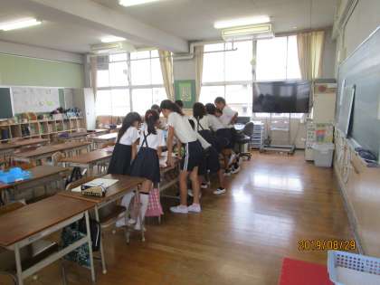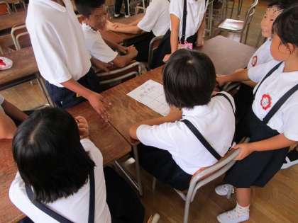 みんなで相談しながら班長が答えを用紙に書いていました。
