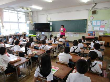 今までひらがなやカタカナを勉強してきた1年生が、少しずつ漢字を勉強していくことになります。先生の話を聞き、配られた漢字ドリルを見ている子どもたちの顔からは、「がんばるぞ!」という思いが感じられました。