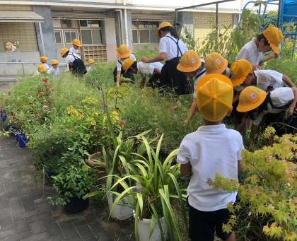 9月2日(月) 学習園の生い茂った雑草をみんなで抜いていきました。