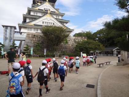 1年生と2年生合同で、大阪城公園へ遠足に行きました。とてもお天気がよく遠足日和でした。