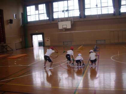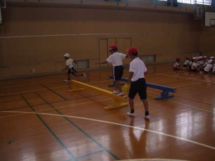 1・2年生分かれて“かけっこ”や“障害物走”の練習をしています。