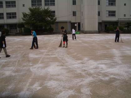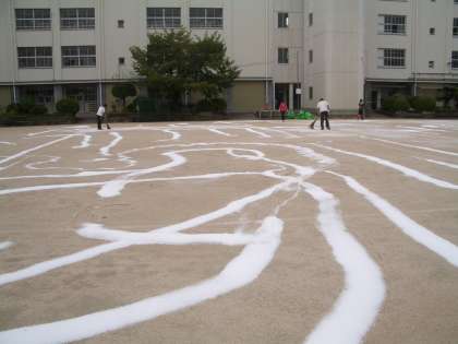 運動会前、恒例のにがりまきを職員作業で行いました。