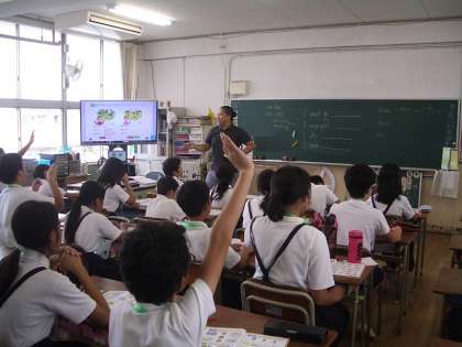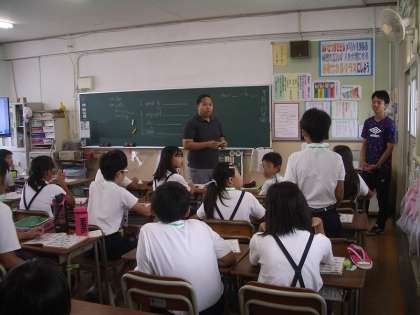 ケルビン先生と6年生とが、英語でコミュニケーションを楽しんでいます。