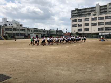 入退場だけではなく、ビブスをつけてバトンをもっての練習をしました。