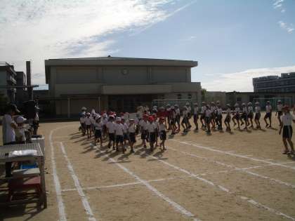今日は、まず入場行進に続いて、開会式の練習を行いました。
