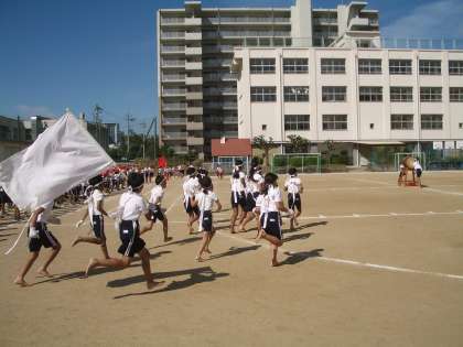 赤組・白組とも応援団のリードに従い、“おーっ!!”大声を出していました。