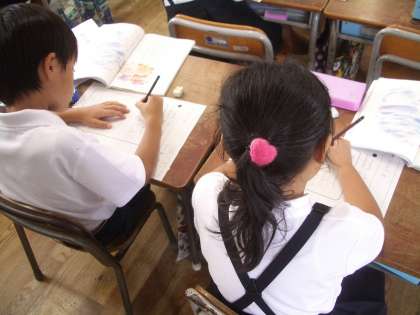 “うさぎのこ”のことばの続きを考えてワークシートに書きました。