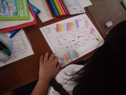 2年生が先週見学させていただいた“長吉銀座商店街”のお店の方々にお礼状を書きました。
