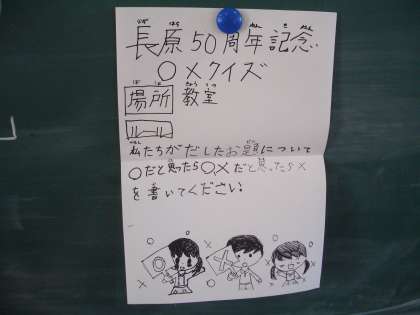 今日のスマイル集会は放送集会で、“長原50周年記念○×クイズ”でした・