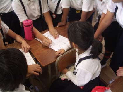 創立当初からの様々な事柄について○×で答える問題に、子どもたちも頭をひねっていました。