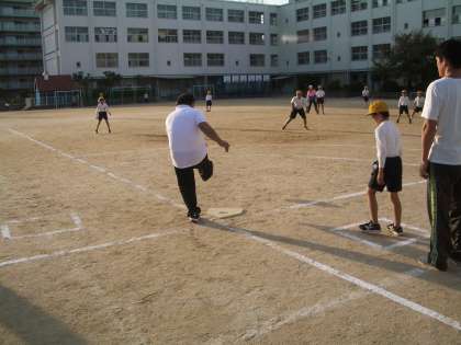 3小スポーツ大会に参加する児童がキックベースボールの練習をしました。