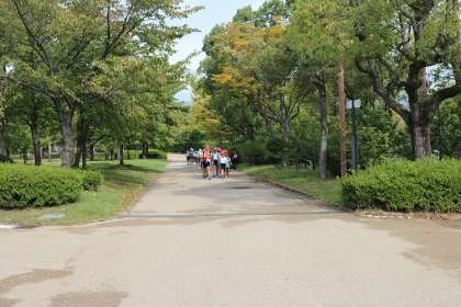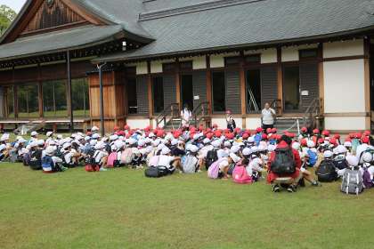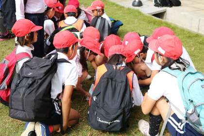 西の丸庭園に集合し、開会式をした後スマイル班ごとにオリエンテーリングにスタートしました。スタートを待つ子どもたちは、“待ち待ちクイズ30問”を協力しながら解きました。