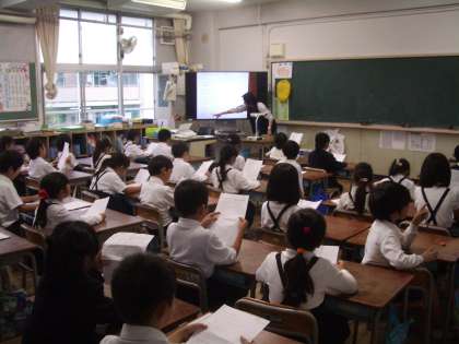 10月21日(月) 1年生は50周年記念式典で歌う歌の練習をしていました。