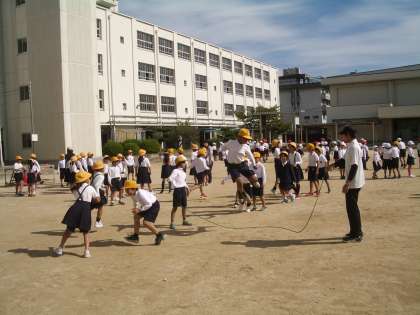 秋晴れの少し汗ばむ陽気の中、なわとびタイムが行われました。