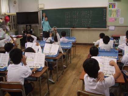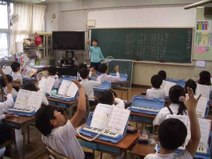 指づかいに気をつけながら、鍵盤ハーモニカの練習をしています。