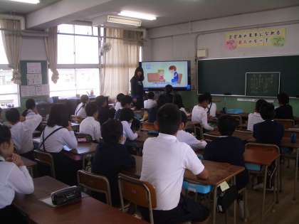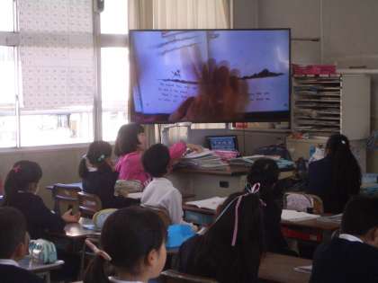 今日は一文一文DVDを止め、子どもたちに聞いたとおりに発音させている学級があります。