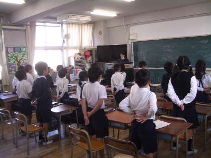 低学年は、明日の式典に向けて最後の歌の練習をしています。