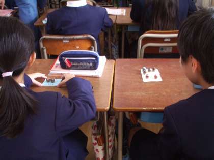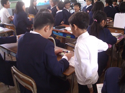 スマイル班でお世話になっている6年生にどんぐり人形を渡すと、6年生たちは少し照れ臭そうに、でもとってもうれしそうにもらっていました。