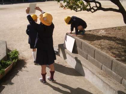 物に日光を当てると、物の明るさや暖かさが変わることを確かめています。