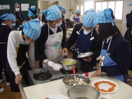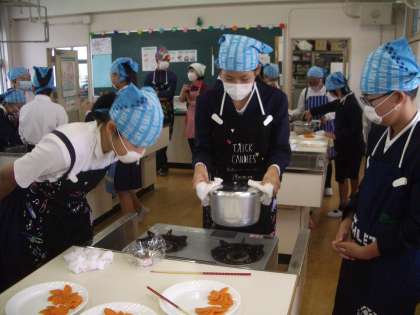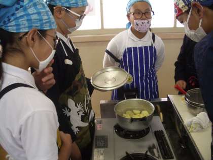 小口切りにしたじゃがいもを煮た後にお湯を捨て、塩を加えてから鍋にふたをして何度か揺さぶると、おいしそうなこふきいもが出来上がりました。