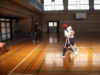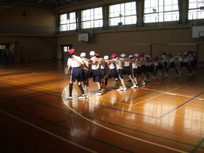 今日の体育の時間、欠席者を除く全員で挑戦しました。