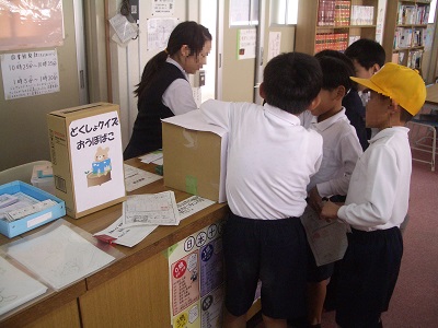 11月は読書月間ということで、図書委員がスタンプカード・くじ引き・読書クイズなどを行っています。子どもたちができるだけ図書館に足を運び、たくさんの本を読んでほしいと思います。