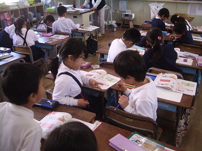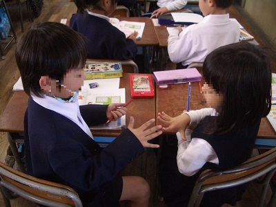 1年生の算数では、ジャンケンで陣地の取り合いをしました。