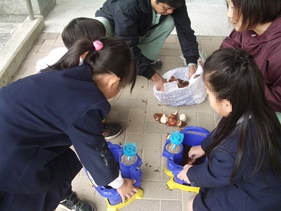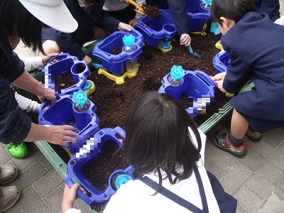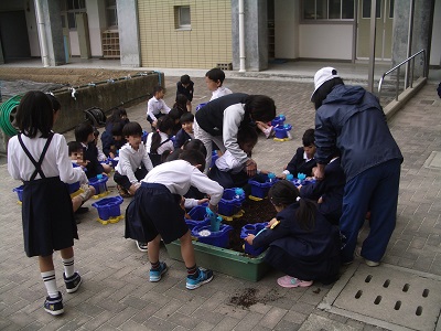 1年生がチューリップの球根を植えました。