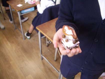 2年生の子どもたちが、どんぐりなどを使って“木の実ケーキ”を作りました。