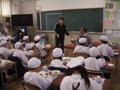 今日は2年生の給食の時間にラワット先生が来てくださり、子どもたちは大喜びしながらも少し緊張した面持ちでした。