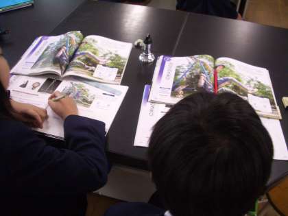 ブランコの写真を見ながら振り子について気づいたことを発表しました。