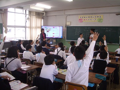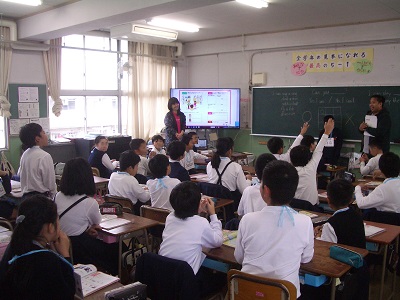 ジェスチャーを見て、英語で“○○ができますか?”と聞く練習をしました。