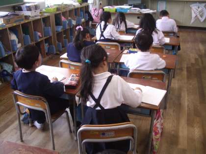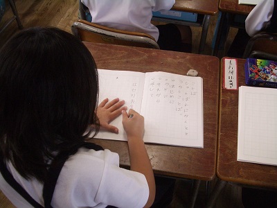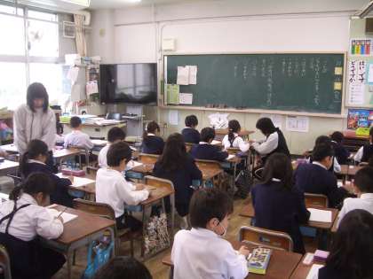 1年生が、“はじめに”“つぎに”“それから”“そして”などの順番に書くときに使う言葉を学び、その言葉を使って文章を書く練習をしました。
