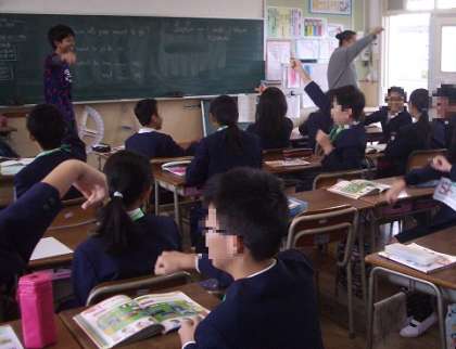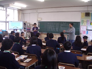 少し恥ずかしそうにしながらも音楽に合わせて英語に取り組んでいます。