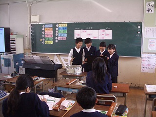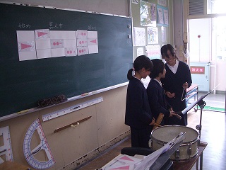 4年生の音楽では、4種類のカードを使って音楽つくりをし、楽器を使って演奏をしました。