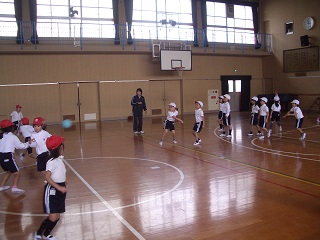 子どもたちはコートの中をかけ回っています。