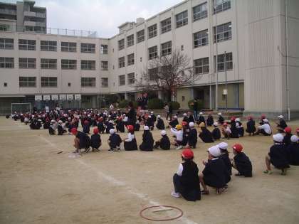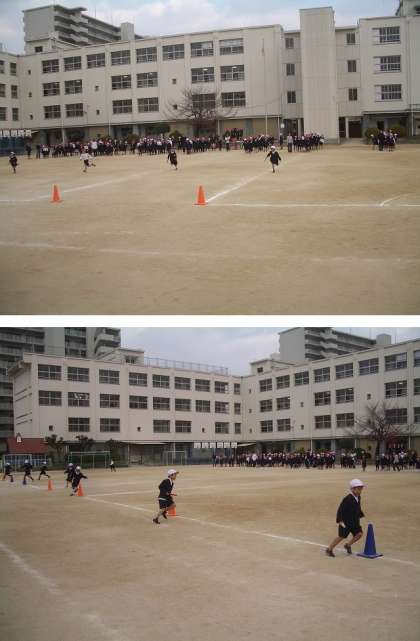 1年生から6年生までいっしょうけんめいに走ってバトンをつないでいました。