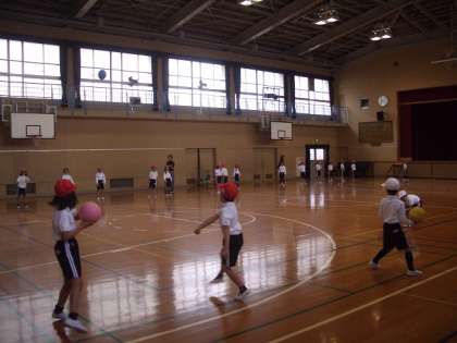 「2階まで投げていいよ」と先生に言われて、みんな思いっきりボールを投げていました。