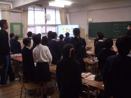 「何がほしい?」「○○が欲しい」「いくつ?」……ビデオに合わせリズムにのって発音しています。